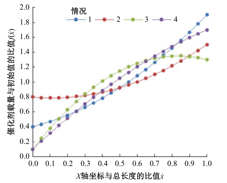 To improve the magnitude and distribution uniformity of current density at various locations of the fuel cell membrane electrode, a polynomial function is used to approximate the distribution law of catalyst loading, and a weighted objective function is constructed for the average current density and current density uniformity of the fuel cell. By using numerical simulation to solve the mapping relationship between polynomial coefficients and weighted objective function, the distribution function can be optimized. The results showed that compared with fuel cells with uniformly distributed catalyst loading, fuel cells with optimized non-uniform catalyst loading distribution showed a significant improvement in current density uniformity, although the average current density slightly decreased. Considering both the magnitude and uniformity of fuel cell current density,non-uniform catalyst loading surface surpasses the uniform one. Furthermore, the first-order distribution function indicates greater advantages.