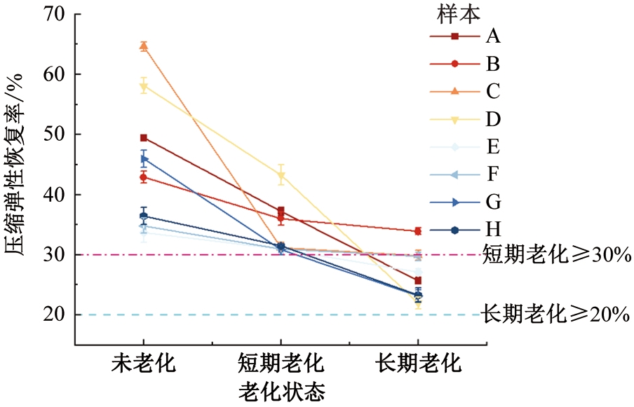 短期老化后的压缩弹性恢复率/%37.735.230.543.330.430.330.231.6