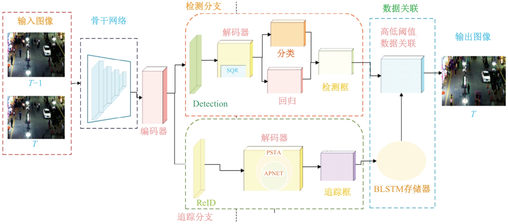 针对密集行人场景下多目标跟踪存在的目标错检、漏检、关联不准确、重识别错误等问题,提出了一种基于Transformer的多行人跟踪网络。算法包含检测、数据关联和追踪3个模块,其中检测模块采用选择性查询收集方法增强解码器对关键特征的收集,提高模型对目标的表征能力,有效减少目标错检漏检问题;数据关联模块采用双线性长短期记忆网络(BLSTM)与二次数据关联的融合策略,解决密集行人由于相似外观导致关联不准确的问题;最后在追踪模块上将注意力金字塔嵌入金字塔时空聚合模块以捕获不同尺度特征图的时空信息,提高了目标重识别的准确性。本文网络在公开数据集MOT16、MOT17上进行了性能测试,实验结果表明:相较于其他方法,本文方法能够实现更准确的多行人追踪。