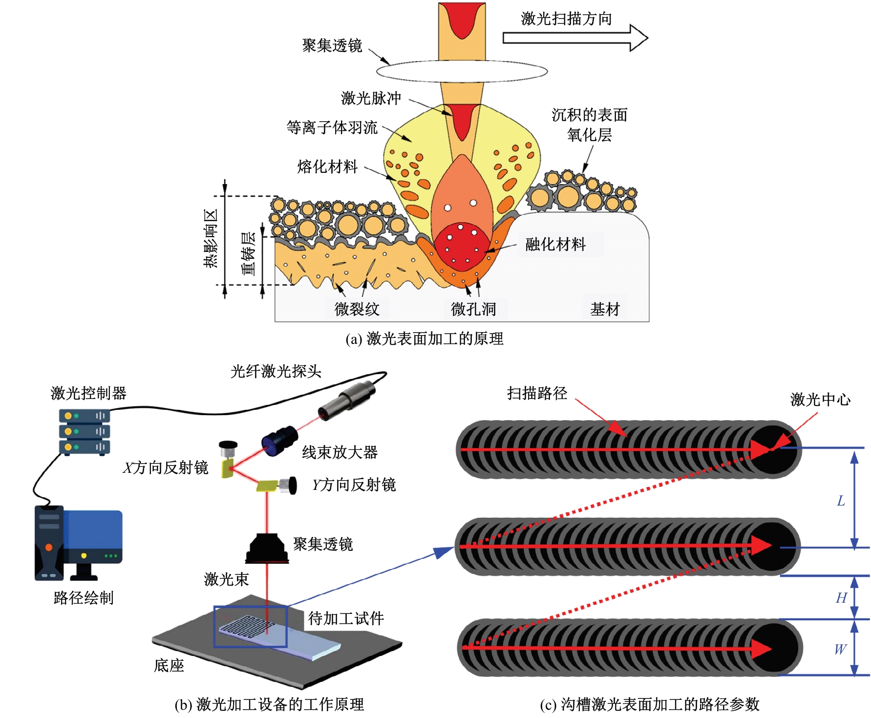 Schematic diagrams of typical laser-treated surface groove processing paths"