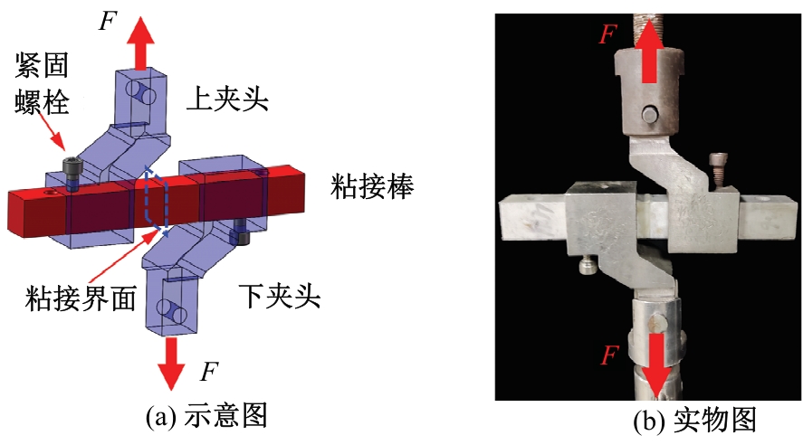 Schematic and physical diagrams of the fixture of shear mechanical properties for bonding joints"