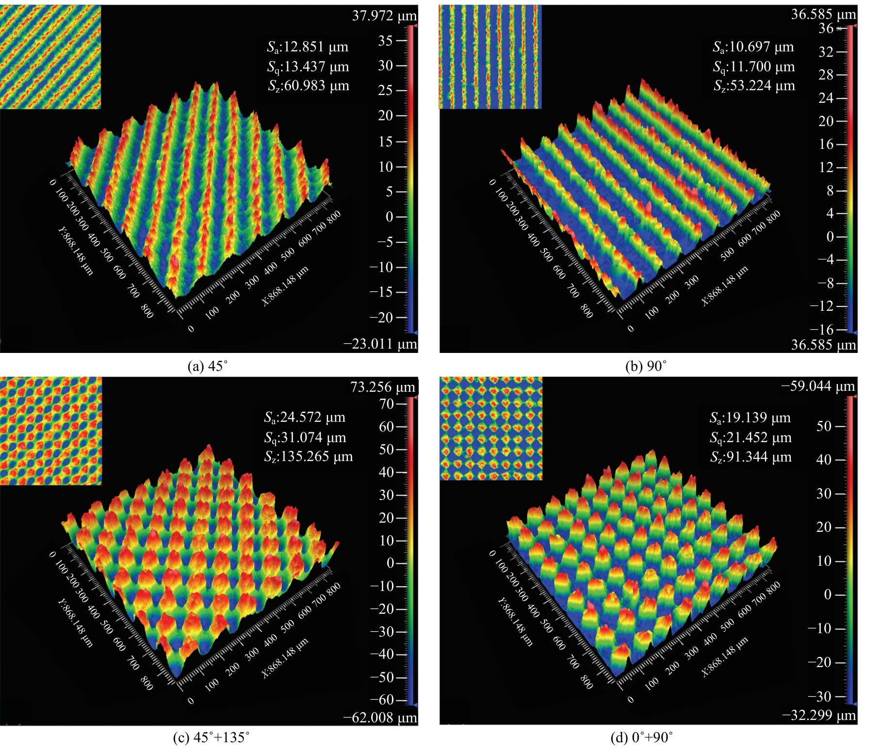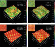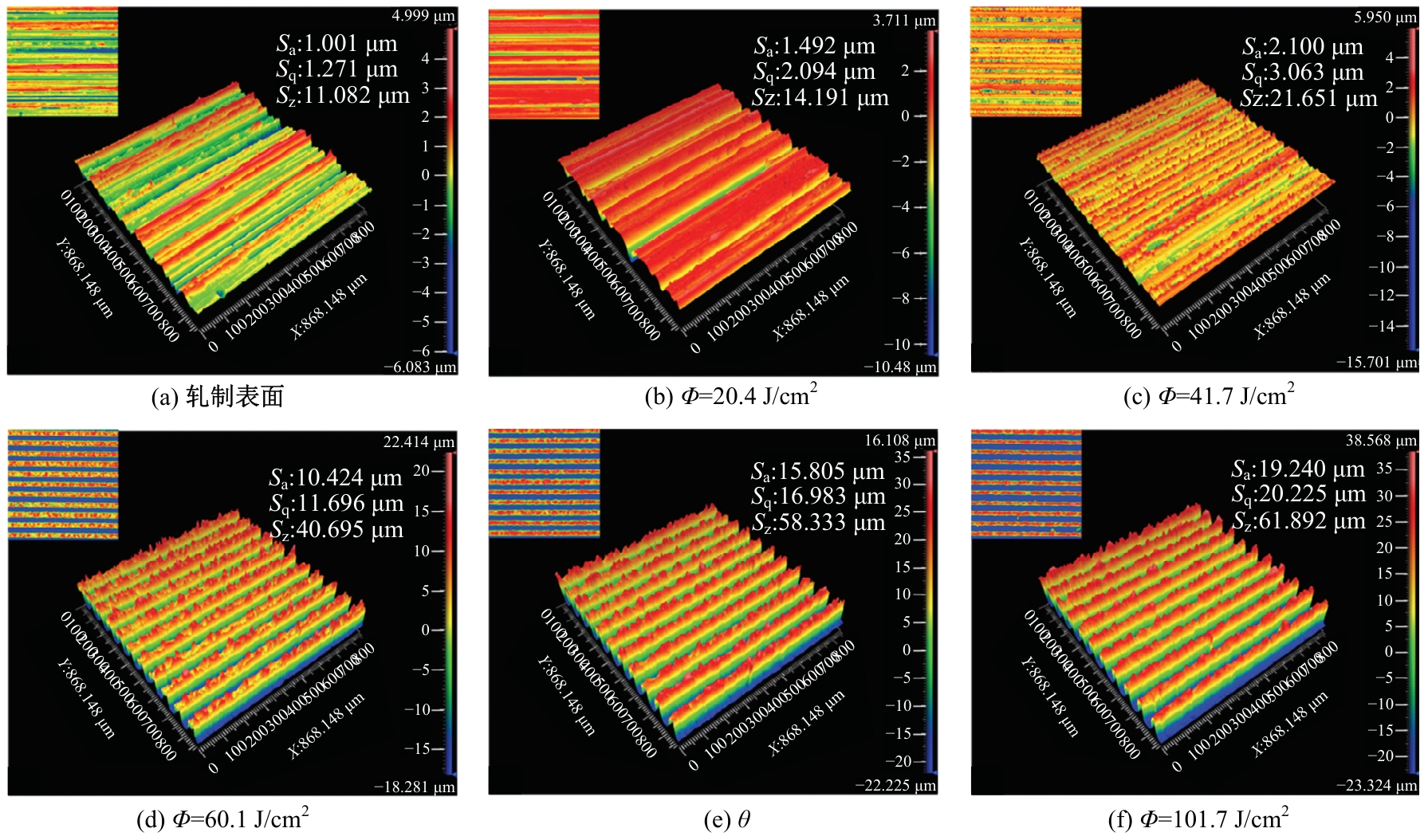 Three-dimensional profiles of surfaces processed with different laser energy densities"