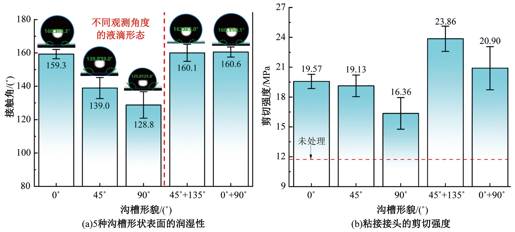 Wettability of surfaces of five groove shapes and shear strength of bonding joints"
