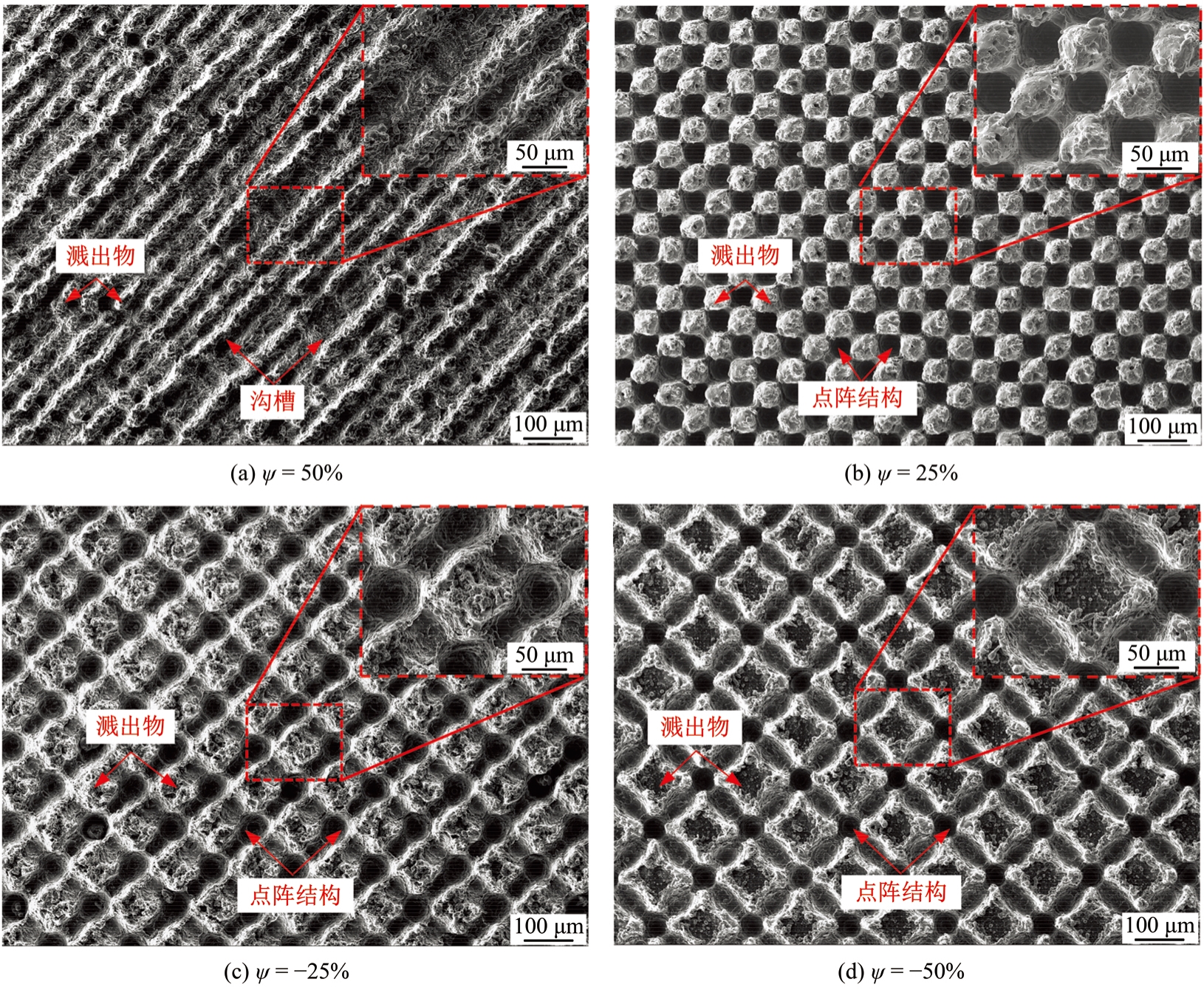 Surface morphology of bonded joints at four laser overlap rates"