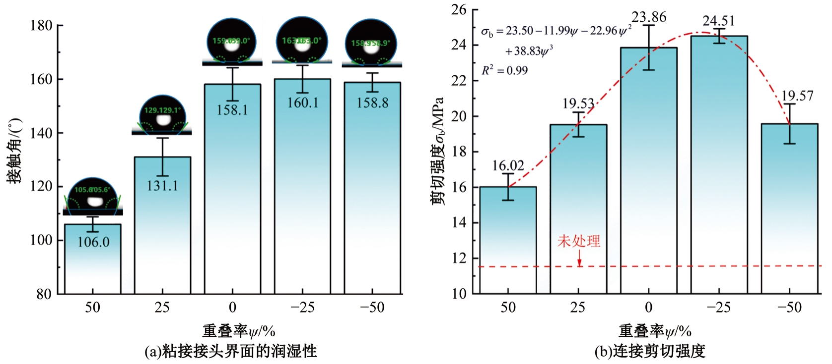 Wettability and shear strength of the bonding joints at different overlap rates"