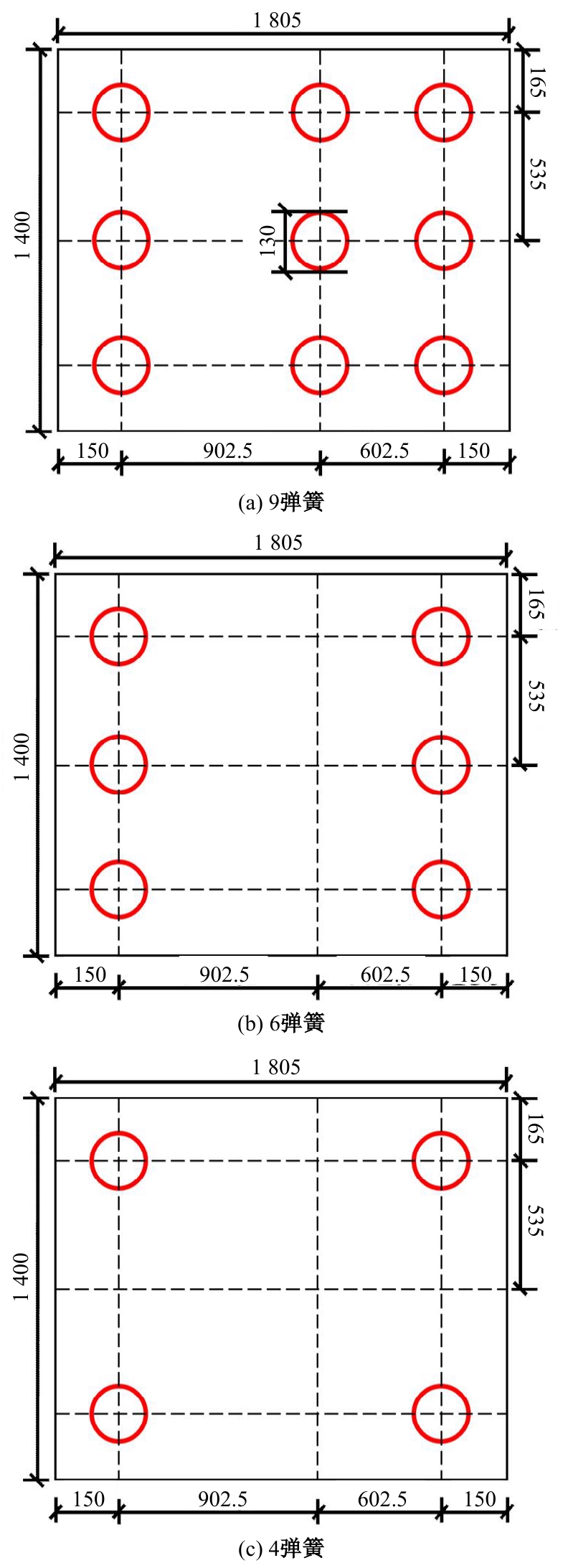 Layout form of springs(unit: mm)"