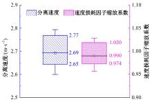 Simulation data distribution and mean calculation of scaling coefficient of separation velocityand velocity loss factor"