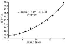 | ͼ4 ��ͬԤӦ��ֵ�¸���һ��Ƶ��Fig.4 Nature frequency of steel beam under different prestress |